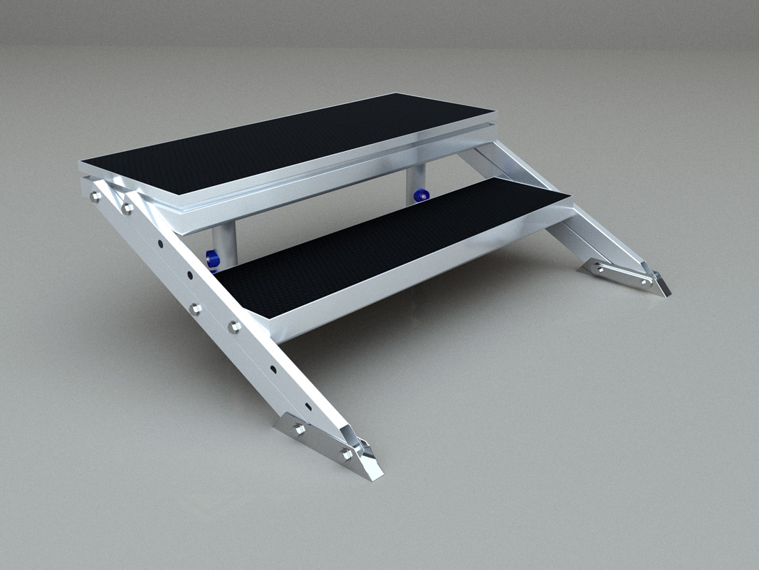 STB系列专业舞台梯,每一套梯子标配有两条专业伸缩腿。梯子的宽度一般为1M宽和1.22M宽,也可定做2M宽或2.44M宽。梯子的级数根据舞台高度而定。且此舞台梯子的高度可由舞台腿来完成伸缩功能。