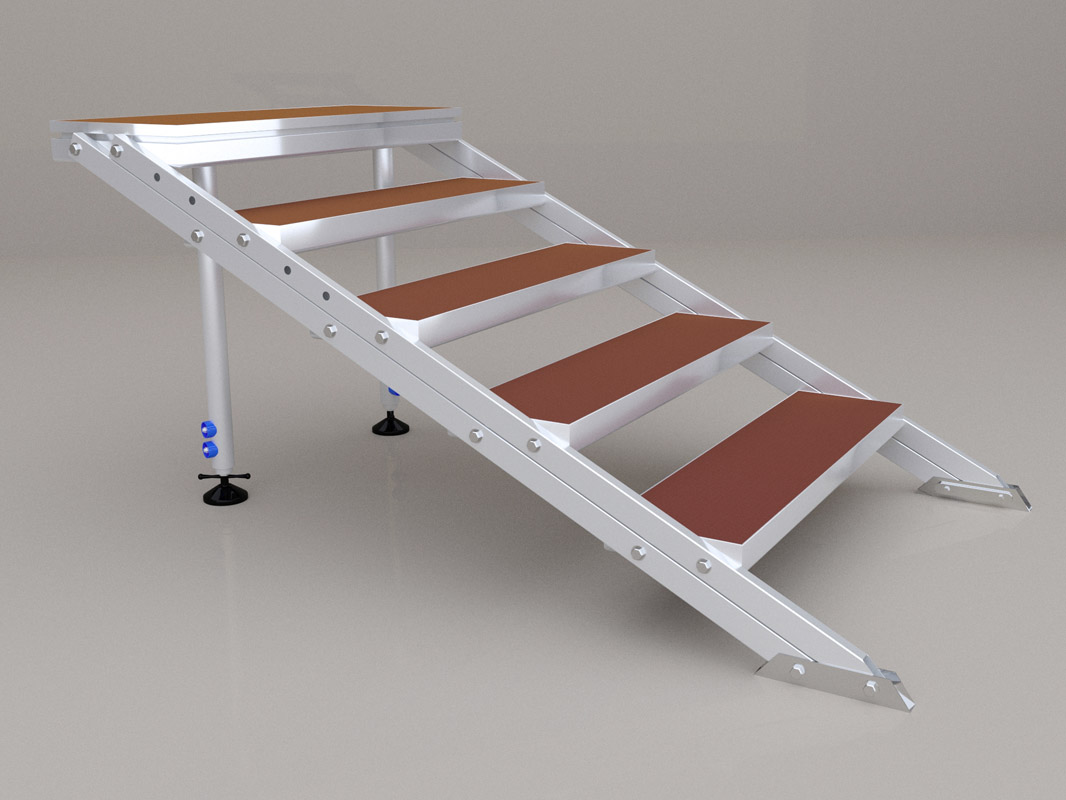 STB系列专业舞台梯,每一套梯子标配有两条专业伸缩腿。梯子的宽度一般为1M宽和1.22M宽,也可定做2M宽或2.44M宽。梯子的级数根据舞台高度而定。且此舞台梯子的高度可由舞台腿来完成伸缩功能。