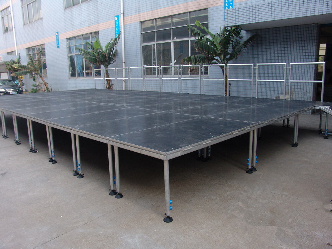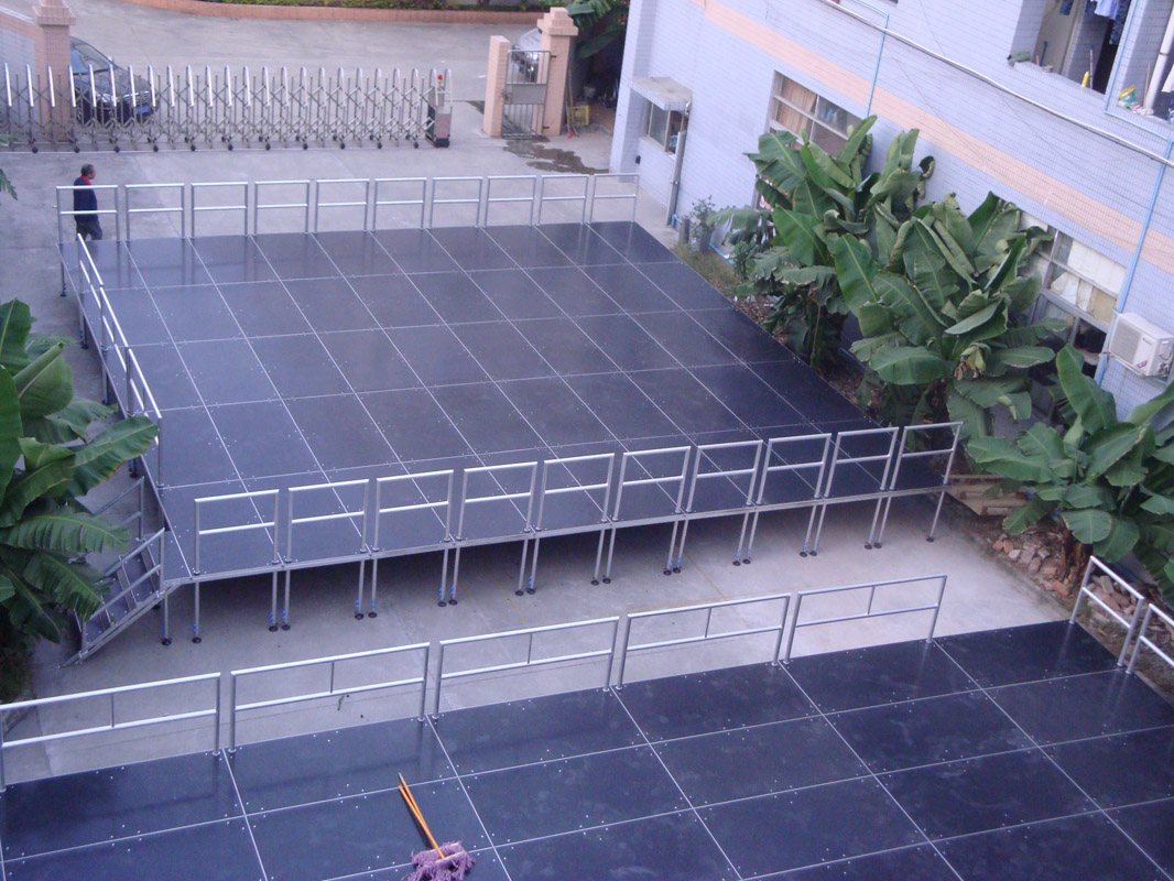 STB系列专业舞台护栏,由护栏托与舞台相接。每一张舞台都留有护栏孔,可根据自行需要决定是否需要安装护栏。护栏的安装简单快捷,无需任何工具。每一个护栏配有两个护栏托。护栏所用材料为50*2MM铝管。护栏规格根据舞台尺寸而定。护栏高度可根据自行需要定做。
