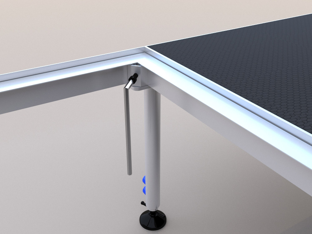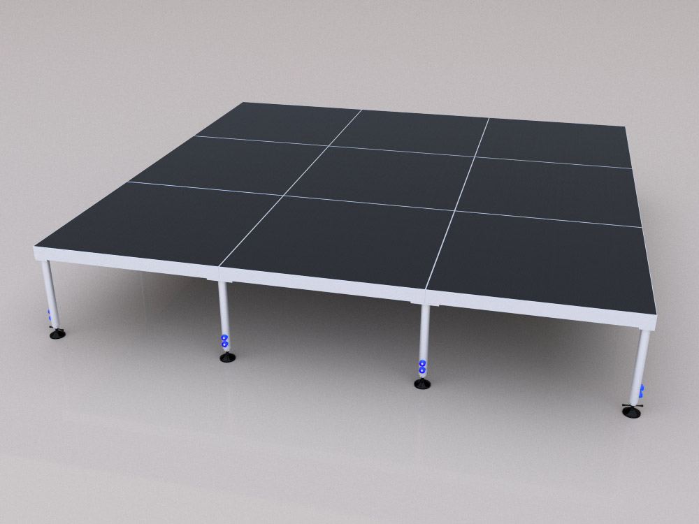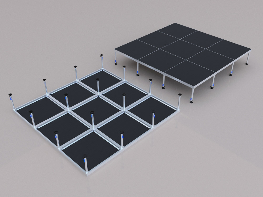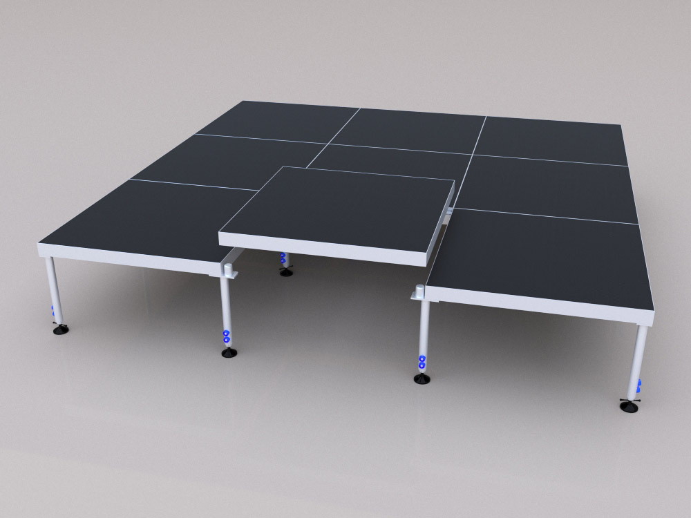 STC系列专业演出省腿舞台,由我司定制开模边框和伸缩腿组成。舞台与舞台之间的拼接舞台腿托完成。操作简便,无需任何工具。