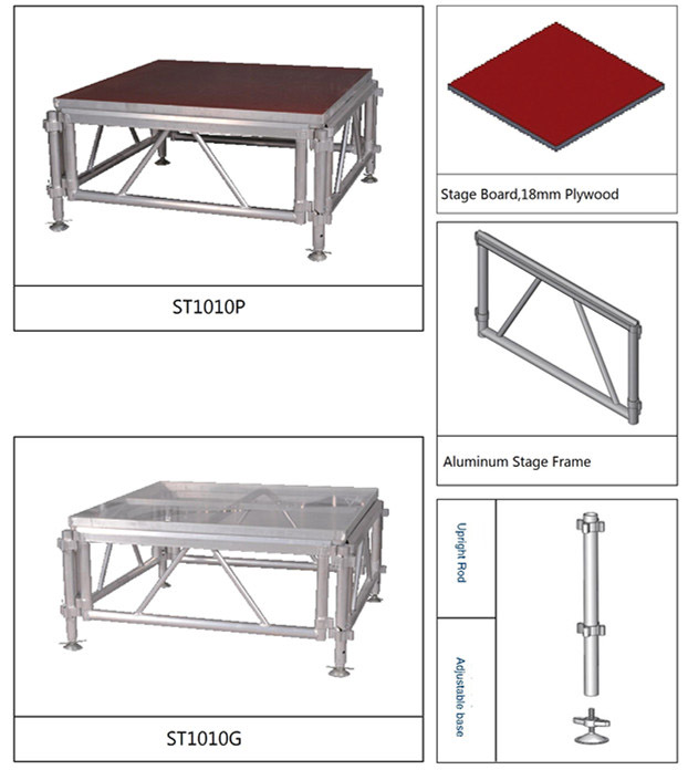 ST系列专业演出拼装老款舞台。其拼接方式为舞台板直接扣在舞台框架上即可。操作简便,无需任何工具。
