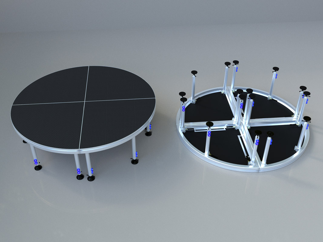 Cinow STB Series Pro Concert Stages are flexible to let your imagination to create individual staging constructions. STB can be transformed and installed quickly and easily, often without the need for any tools. It comes in a variety of standard sizes and shapes, to meet all your imaginable stages constructions. All the stages can be matched with telescopic legs and fixed legs. The Telescopic Legs and the legs balancers are good for any uneven floor.