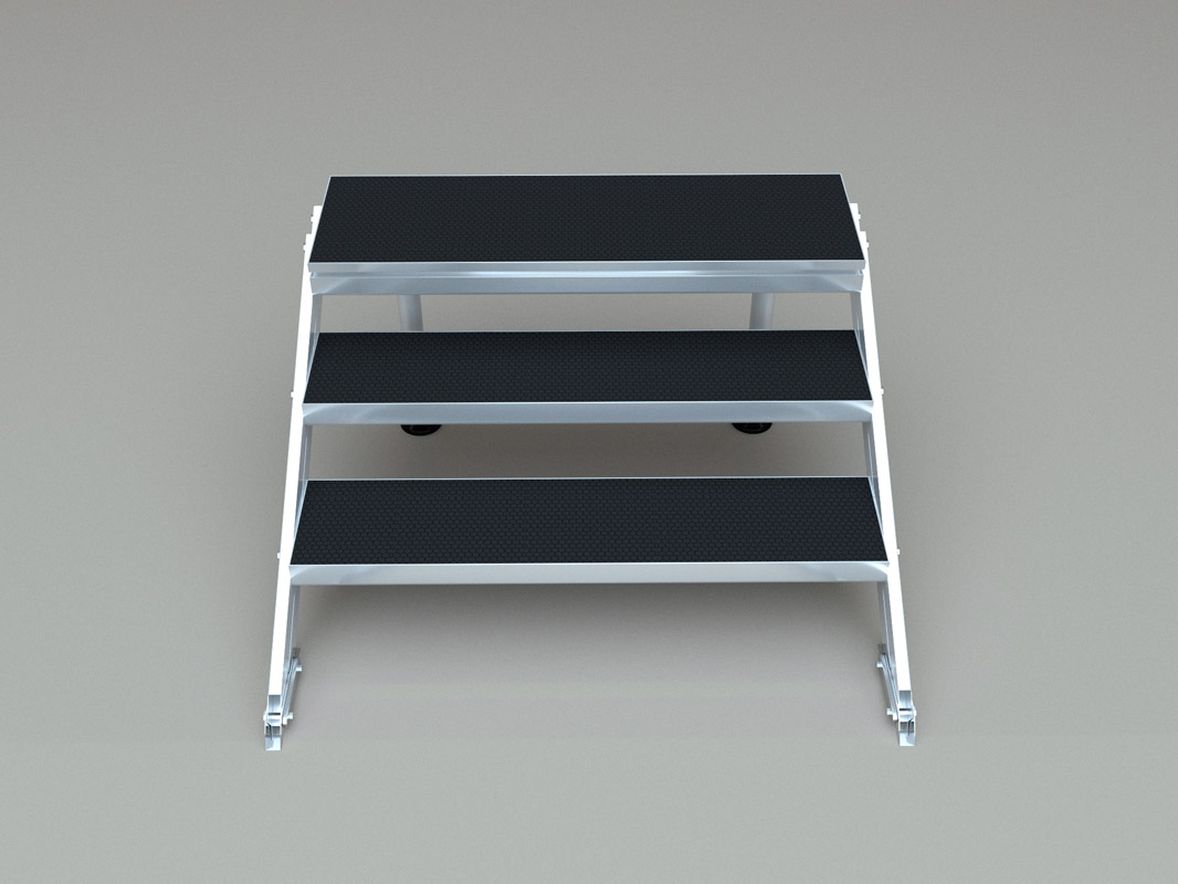 Cinow Stage Stair is adjustable. This unique, fully adjustable stair consists of separate telescopic legs which can be combined to form a adjustable staircase between 40cm and 60CM, 50cm and 80cm, 60cm and 100cm and 2M maximum height. This stair steps are flexible and have a varying angle of 30 to 60 degrees. It is designed to the maximum loading of 500KG/㎡. There are 2steps stairs, 3steps , 4steps stair ...9steps. The steps quantity depends on the stage height. Each stair come with two telescopic legs. It is possible to creat a staircase of different widths as well as several heights.