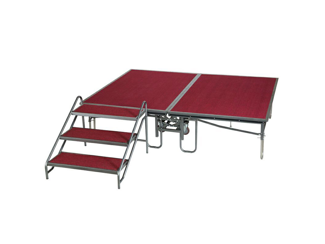 Carpeted Stairs Steps Frame: 40*25*1.5mm Square Steel Side Frame: 25*1.5mm Circular Tube Platform: 5mm Thickness & Fireproof Carpeted 18mm Plywood |
